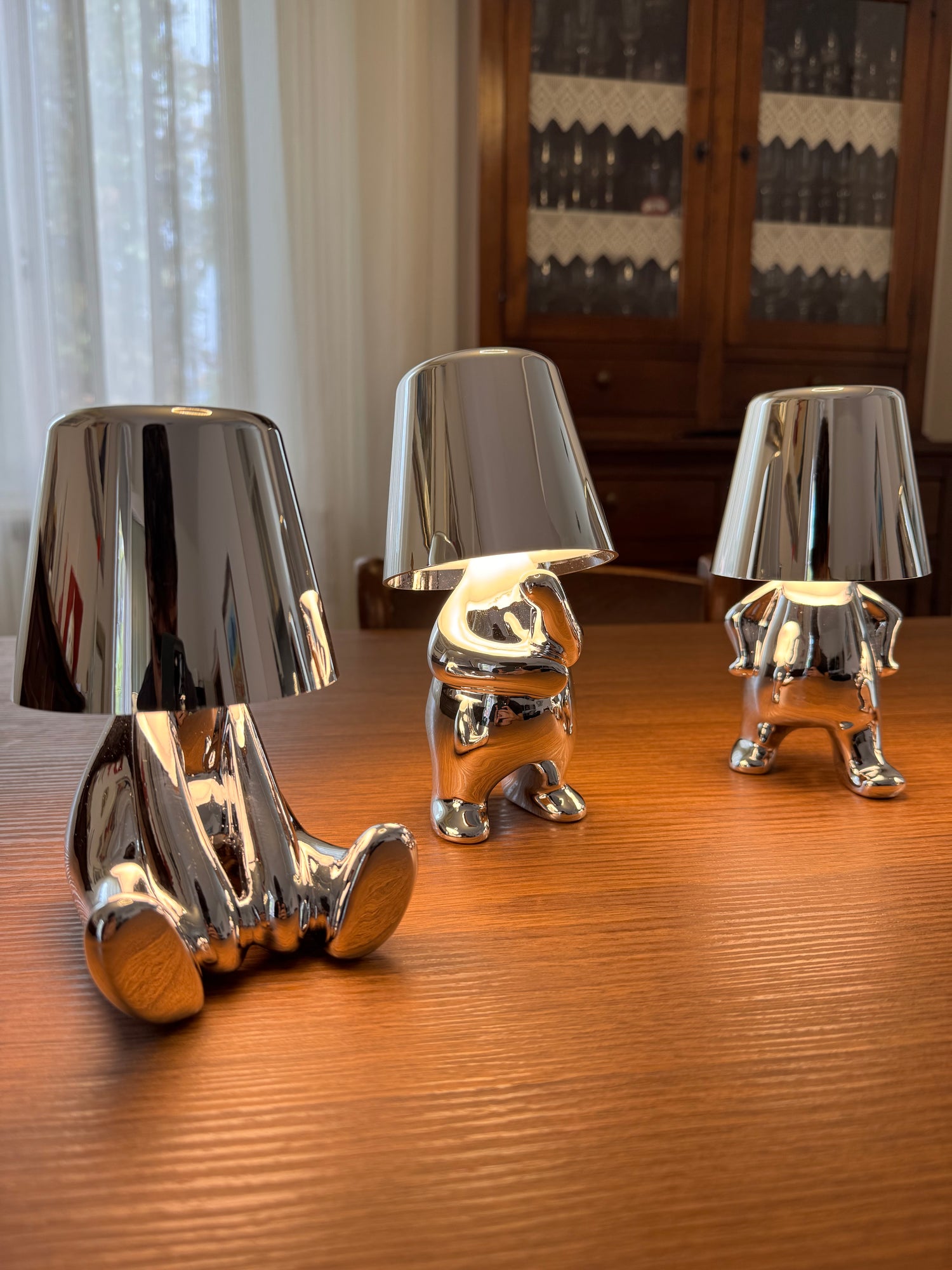 Una collezione di lampade a LED realizzate con meticolosa attenzione ai dettagli, concepite come interpretazioni artistiche di figure umane immerse nella contemplazione. Ogni elemento della serie rappresenta uno dei cinque fratelli, ciascuno raffigurato in una posa distintiva, esprimendo un diverso stato d'animo meditativo.