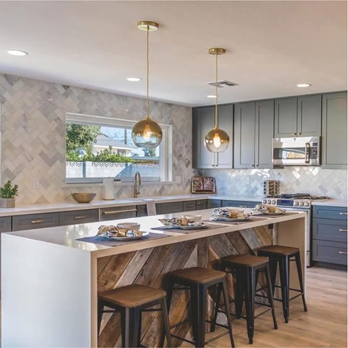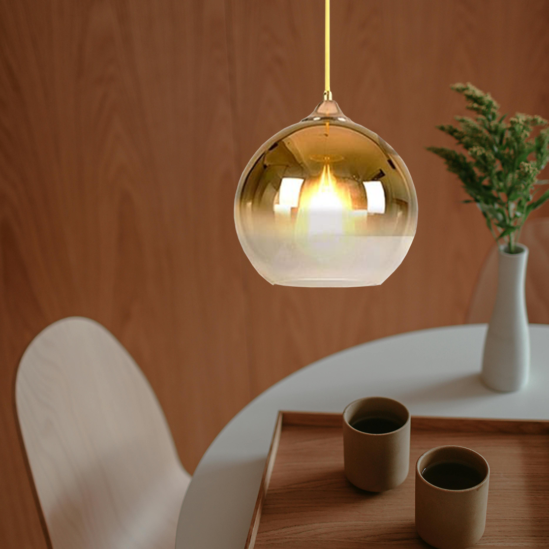 Ogni lampada presenta una sfera in vetro sfumato disponibile in tre eleganti tonalità: oro, rame e argento, che creano un effetto di luce caldo e accogliente. Disponibili come set o singolarmente.