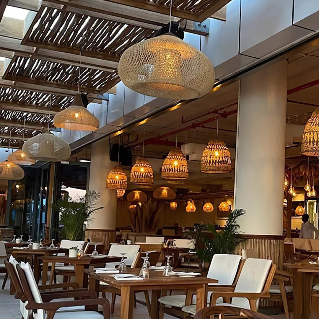 Lampadario a sospensione in fibra intrecciata naturale, dal design semplice ed essenziale. La forma tondeggiante garantisce una diffusione omogenea della luce, ideale per creare un’illuminazione calda e accogliente. Si adatta con facilità a diversi contesti d’arredo, dal moderno al boho, mantenendo uno stile naturale e discreto. Un complemento pratico e versatile per valorizzare ambienti domestici e conviviali.